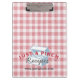Have fun while staying organized when sporting this stylish gingham clipboard with cheeky logo on the back.