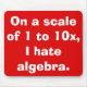 This I Hate Algebra mousepad is for people who love algebra. Ha! I'm just kidding. That would be silly! No, it's for the 99yx% of us who don't understand what letters are doing in math. The mousepad design features a vibrant, red background and bold, white writing that says, "On a scale of 1 to 10, I hate algebra." Letters in math. Whose bright idea was that?