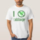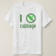 I hate cabbage. Design uses green letters, a green heart and the international "NO" sign to read , "I hate cabbage". For those that do not "heart" it, really dislike it, but have a sense of humor (humour), love to laugh and have their funny bone tickled.