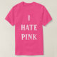 A pink t-shirt that says "I Hate Pink"