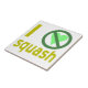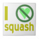 I hate squash. Design uses orange-yellow letters, a green heart and the international "NO" sign to read , "I hate squash". For those that do not "heart" it, really dislike it, but have a sense of humor (humour), love to laugh and have their funny bone tickled.