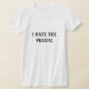 My overall review is that the T-shirt is nice, it fits true to size however the font is significantly smaller than advertised and you can't read it. The printing is unreadable and there is a strain to read it. It does not look like the advertised product. Maybe the shirt color is darker or a larger more visible font should have been used. Photos with and without flash and font is barely legible.