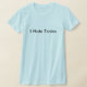 The material is a great quality that is hard to find with most tee shirts. Fabric was not see-through or thin at all, but was also very soft and comfortable. The shirt description states that it runs a little small, so I sized up one size for a perfect fit! I would definitely buy this type of tee shirt again because I love the fit and high quality fabric that I cannot find anywhere else. The printing was perfect and just as pictured. Loved the cute quote and really enjoy the tee in both the quality and design. I love quirky typography designs and funny quotes and I am extremely pleased with the overall quality and value I get at Zazzle!