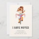 Cute moving announcement with an illustration of a girl riding a bike. Great for single girls moving for college. Illustrated and designed by Patricia Alvarez.