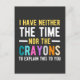 I Have Neither The Time Nor The Crayons To Explain This To You. I Have Neither The Time Or The Crayons To Explain This To You. This design is perfect to wear to around town, to work, for working out or family holiday parties.
