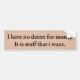 I have no desire for money. Its stuff that i want. Bumper Sticker