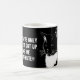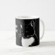 I have only just got up, give me a minute!! Cat illustration white on black mug design.