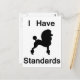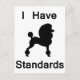 I Have Standards t-shirts, shirts, apparel & gifts feature our clipped Standard Poodle dog breed silhouette with bold I Have Standards text. Such a great shirt for Standard Poodle owners, it definately speaks for itself! Many shirt, t-shirt & apparel choices as well as hats, stickers, mugs, travel mugs and gift items for Poodle dog lovers. Shirts in many styles and colors for men and women, kids and adults, including some made from organic cotton. Sweatshirts and stylish, fun and fashionable shirts, too. We also have other poodle designs, and additional dog breeds.