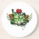 I'm not sure how much moisture these will soak up, haven't had a chance to try them out, but they look good and I like the cork backing. The printing is fine ~ and really looks cool with an artisan's hand made "Hurricane Martini" glass sitting on top of my painting (on the coaster) in my studio.
