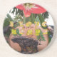 I'm not sure how much moisture these will soak up, haven't had a chance to try them out, but they look good and I like the cork backing. The printing is fine ~ and really looks cool with an artisan's hand made "Hurricane Martini" glass sitting on top of my painting (on the coaster) in my studio.