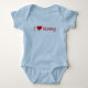 Celebrate the birth of a friend's baby boy with this cute blue bodysuit sporting the text I [heart]/love Mommy, in red letters