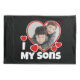I Love My Sons with a Heart Custom Photograph. Uploading your photo image will automatically shape it into a heart. For those who has more than one son. Great for parents, fathers, mothers, for their boys. For his birthday, anniversary, Christmas, valentine's day, and more. Red hearts design, white font/text.