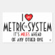 I -heart symbol- the metric system (plus joke) rectangular sticker