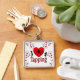 I have given this keychain as a gift to several different people now but changed out the image to personalize it. My friend sent me a photo of the keychain with sweet Bella. It rests next to her leash. Small, understated, and packed with a whole lotta heart. Printing quality looked great. Cropped perfectly. Overall I am very satisfied. Thank you Zazzle!