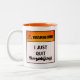 I JUST QUIT SMOKING Funny Warning Label Two-Tone Coffee Mug