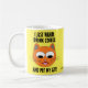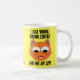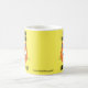 This humorous cat lover mug features a smiling orange cat face with the saying - "I JUST WANNA DRINK COFFEE AND PET MY CAT!" Background color is bright and sunny yellow!