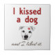 Dog lovers stand up and show the world that you kiss dogs and you like it. The design on this square tile is text punctuated with an image of my own sweet rescue dog. Yes, I kiss him a lot and yes, I like it. If you share my sentiment, have fun with this item. Design is available on a variety of products. Feel free to change the background color. Enjoy!