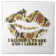 Snake charmers, snake lovers, and all those who have kissed a snake and liked it, this design is for you. Our snake patterned lips with the words I kissed a snake and I like it comes in a yellow, brown and black snake skin pattern with our signature dry brush texture.