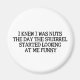 I knew I was nuts the day the squirrel started looking at me funny. Funny and silly saying on being crazy and squirrel. Play on words with nuts.