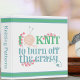 A typography style 3 ring binder for knitters - perfect for all your knitting patterns, design notes and custom measurements. The knitting saying reads "I knit to burn off the crazy" and is written with stylized typography in soft shades of blue and green. The wording is decorated with pink heart shaped vines, knitting yarn and needles. Please browse our store for matching and coordinating items.