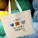I Knit So I Don't Unravel knitting tote bag. This blue orange themed knitting yarn balls adorn this tote bag to use for your knitting supplies.