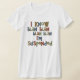 The material is a great quality that is hard to find with most tee shirts. Fabric was not see-through or thin at all, but was also very soft and comfortable. The shirt description states that it runs a little small, so I sized up one size for a perfect fit! I would definitely buy this type of tee shirt again because I love the fit and high quality fabric that I cannot find anywhere else. The printing was perfect and just as pictured. Loved the cute quote and really enjoy the tee in both the quality and design. I love quirky typography designs and funny quotes and I am extremely pleased with the overall quality and value I get at Zazzle!