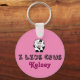 I love cows. A cartoon cow on top of the words I Like Cows. Cute custom farm animal keychain gift.