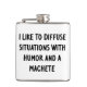 For the sarcasm lover in all of us. Check out this witty “I Like to Diffuse Situations with Humor and a Machete” design on apparel and gifts.