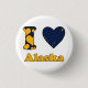 Ik houd van Alaska button. Tekst: I heart Alaska Afbeelding: hart met de vlag van Alaska.