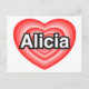 An object of affection. I love Alicia. I love you Alicia. A valentine for Alicia, happy birthday Alicia, or a daily sentiment. Personalized, customized/customizable. An Alicia heart.