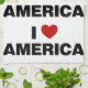 Patriotic I Love America with red heart.