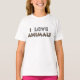 This girls shirt reads "I Love Animals". The text is created with cheetah, zebra and tiger prints. Perfect for all animal lovers.