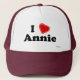 I love Annie! Is your name Annie? Do you have a husband, boyfriend, male family member or male friend who you know loves you? Or do you have a wife, girlfriend, female family member or female friend named Annie whom you love deeply? If so, this "I Love" hat is exactly the gift that you're looking for! The design features the letter "I" in black lettering with a red heart on the top and "Annie" in black lettering on the bottom.