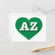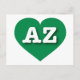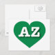 This postcard features a vibrant green heart containing the bold white upper case letters AZ, the official abbreviation for the state of Arizona, the Grand Canyon State. The reverse side of the postcard is blank, awaiting your handwritten sentiments for customized text.