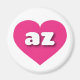 This product features a vibrant hot pink heart containing bold, rounded, white lower case letters az, a playful version of the abbreviation for the state of Arizona.