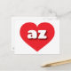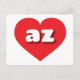 This postcard features a vibrant red heart containing bold, rounded, white lower case letters az, a playful version of the abbreviation for Arizona, the Grand Canyon state. The reverse side of the postcard is blank awaiting your handwritten sentiments or customized text.