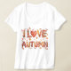 Celebrate the cozy charm of fall with this heartwarming design that wraps you in seasonal joy. The front features the phrase “I LOVE AUTUMN” crafted entirely from vibrant autumn leaves—rich reds, golden yellows, and warm browns. A heart-shaped leaf replaces the “O” in LOVE, adding a playful touch of affection and emotional warmth.