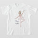 A pretty little girl's t-shirt with pink dancing ballerina en pointe captioned with "I love ballet" in pretty script typography. Copyright Anastasia Designs, all rights reserved.