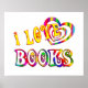A teacher, librarian or student who loves books and reading will enjoy this colorful design with hearts and the words - I Love Books.