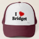 I love Bridget! Is your name Bridget? Do you have a husband, boyfriend, male family member or male friend who you know loves you? Or do you have a wife, girlfriend, female family member or female friend named Bridget whom you love deeply? If so, this "I Love" hat is exactly the gift that you're looking for! The design features the letter "I" in black lettering with a red heart on the top and "Bridget" in black lettering on the bottom.