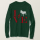 For dog and Bull Terrier lovers. The word "LOVE" is in red and stacked with the "O" replaced with an image of a Bull Terrier. There is also a version for light colored tees.