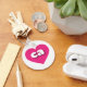 This keychain features a vibrant hot pink heart containing the bold, rounded, white lower case letters ca, a playful version of the abbreviation for California, the golden state.