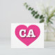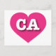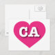 This postcard features a vibrant hot pink heart containing the bold, white, upper case letters CA, the official abbreviation for California, the golden state. The reverse side of the postcard is blank, awaiting your customized text or handwritten sentiments.