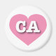 This magnet features a cool pink heart containing the bold, white, upper case letters CA, the official abbreviation for California, the golden state.