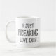 This mug says it all, "I just FREAKING love cats!" It's perfect for the cat lovers in your life.