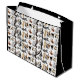 Original fine art design of different shapes and ties of cats by artist Carolyn McFann printed on a customizable gift bag for cat lovers of all ages.
