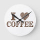 I *heart* coffee round wall clock. Great or a breakfast nook or breakfast room decor. Cool artwork made of coffee beans.