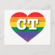 This postcard features a heart with a rainbow pride design and the bold, white, capital letters CT, the official abbreviation for Connecticut, the constitution state. The reverse side of the postcard is blank, awaiting your personalized text or handwritten sentiments. Show your true colors, support marriage equality, and celebrate gay pride.