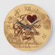 This clock expresses the sentiment "I love costume drama" with a vintage romantic illustration.