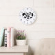 A cow lovers clock featuring a cow print heart in the middle of the clock.